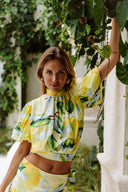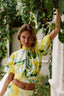 Evie van Vliet in our Gardenia shirt and Heliconia short in olive green. Perfect summer set!