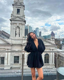 Beauty Sophie Milzink is wearing our luna puff dress in black
