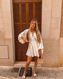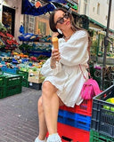 Lizzy van der Ligt in our bestselling luna puff dress white, in size xs.