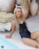 We created together with Laviesanne a beautiful collection, here she is wearing the Sophie bathing suit with a belt made out of recycled plastic.