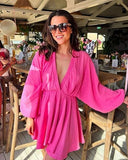 Juliasinning wearing our Luna puff dress in Pink.