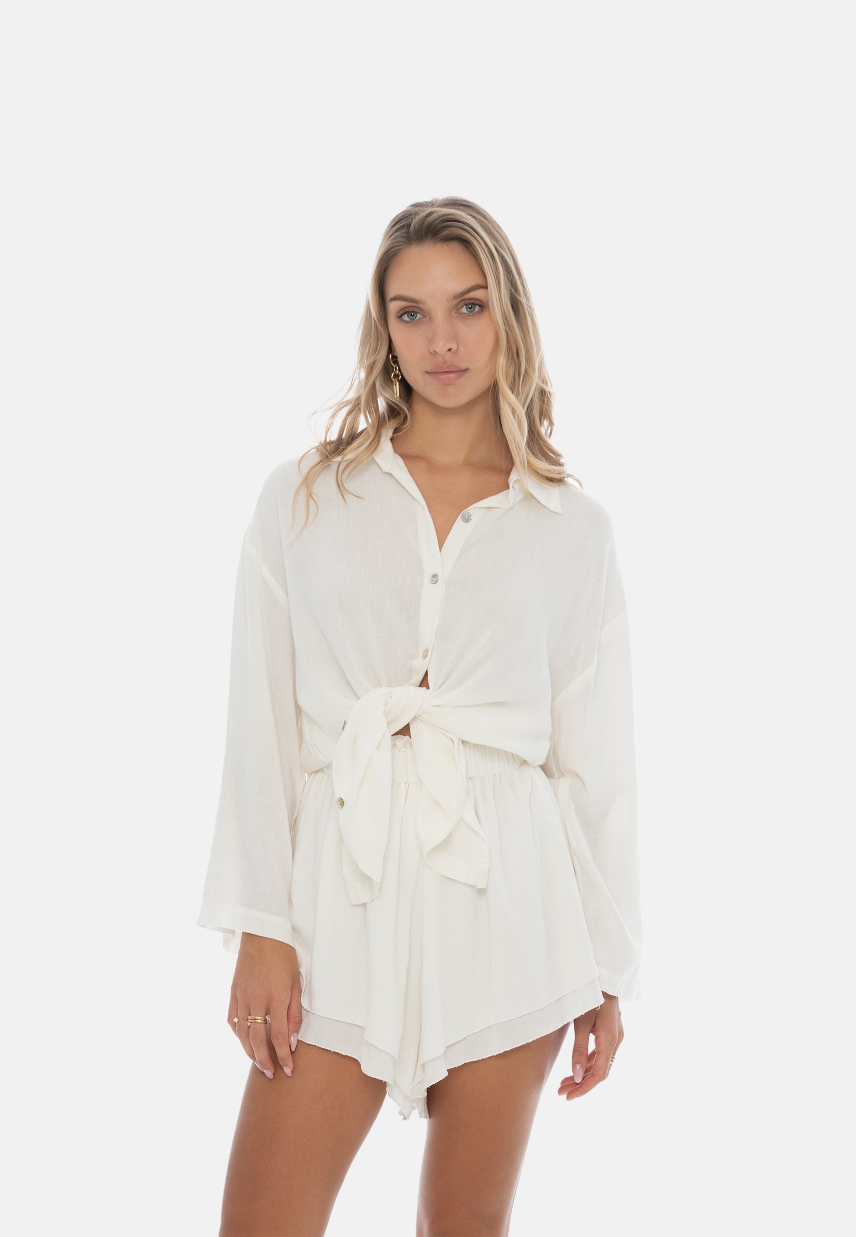 Diese weiße, übergroße Sommerbluse ist ein unverzichtbares Kleidungsstück für einen stilvollen und bequemen Sommerlook. Mit ihren langen, weiten Ärmeln verbindet diese Bluse mühelos Eleganz mit Zweckmäßigkeit. Die Ärmel sind verstellbar und können je nach Wunsch getragen werden. Diese Bluse ist perfekt für einen entspannten Sommertag.
