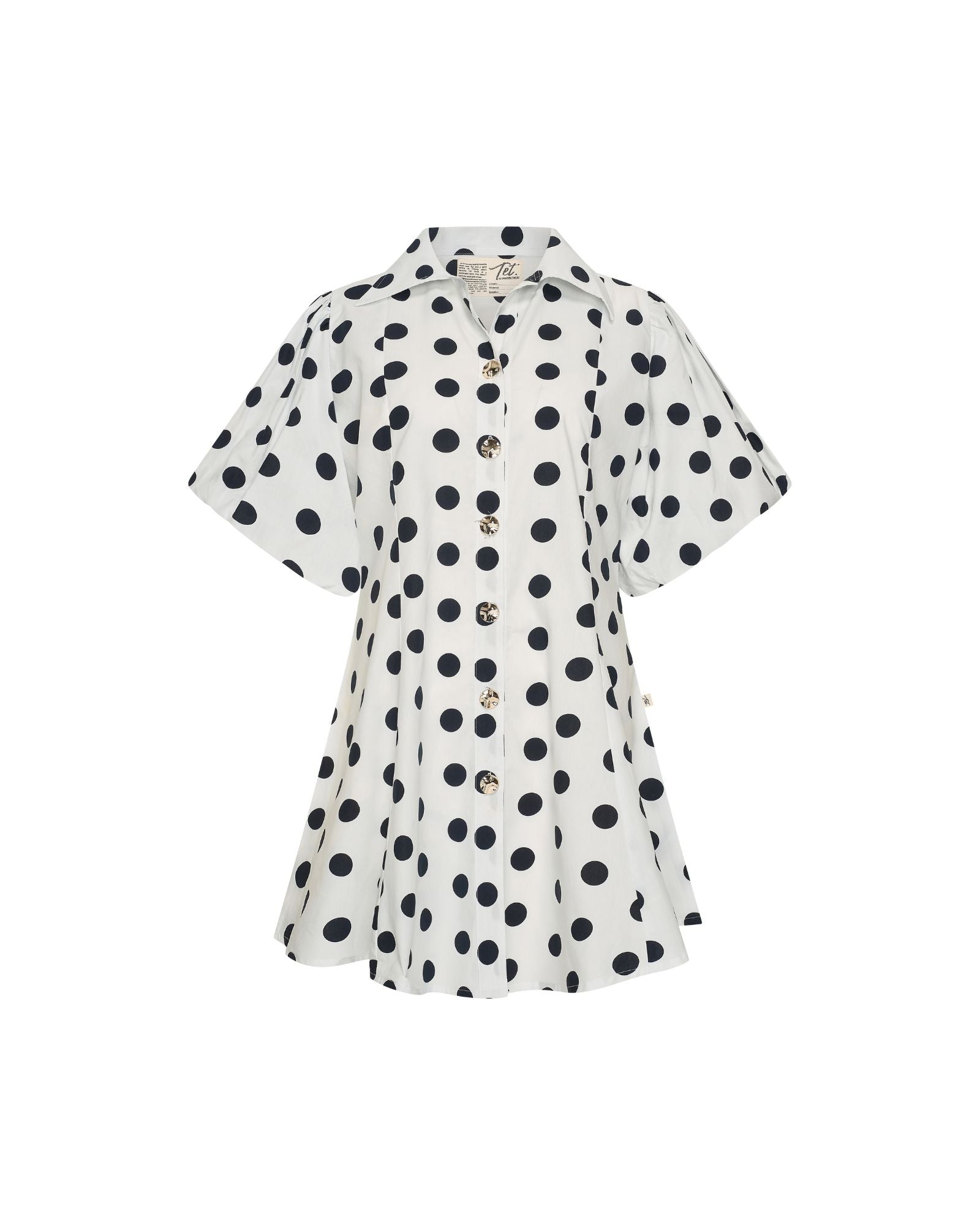 Genieße den Sommer mit der mühelosen Eleganz des Bella Kurzkleids. Gefertigt aus einem verspielten schwarz-weißen Polka-Dot-Stoff, verbindet dieses Kleid einen zeitlosen Print mit einer leichten und femininen Silhouette. Perfekt für warme Tage und entspannte Abende, mit einer weichen Haptik und einer schmeichelhaften Passform.