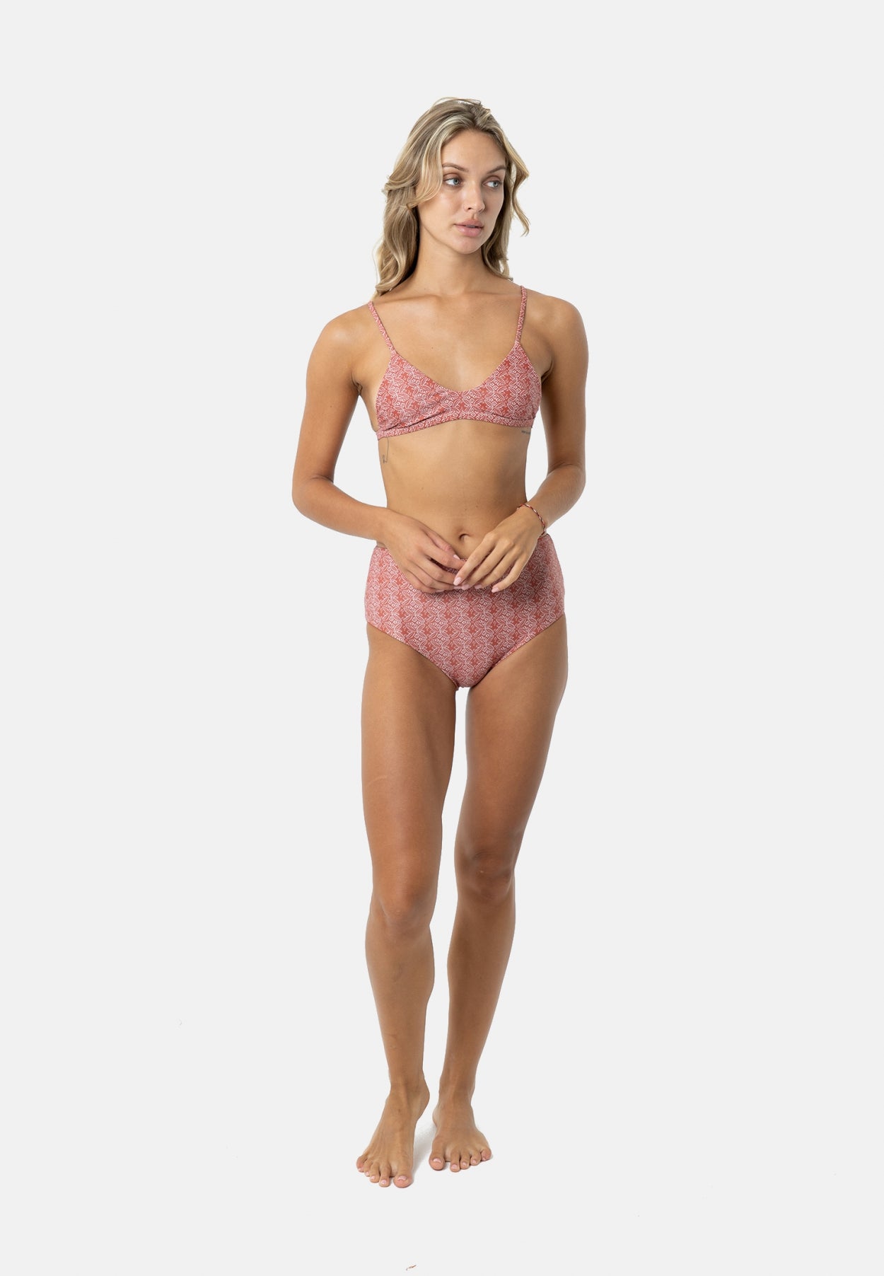 Die Kokomo-Bikinihose mit hoher Taille von TET. x Co-Kollektion ist super schmeichelhaft und sehr bequem. das Unterteil hat eine mittlere Abdeckung und ein wendbares Design mit einem Druckdesign auf der einen Seite und einem unifarbenen Design auf der anderen Seite. Dieses Kokomo-Bikiniunterteil mit hoher Taille wird aus Plastikmüll aus dem Meer hergestellt.
