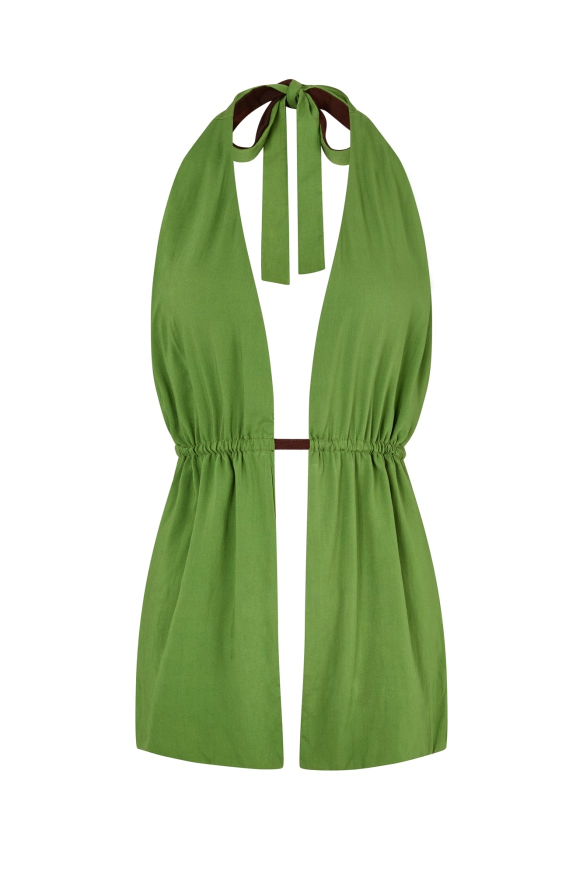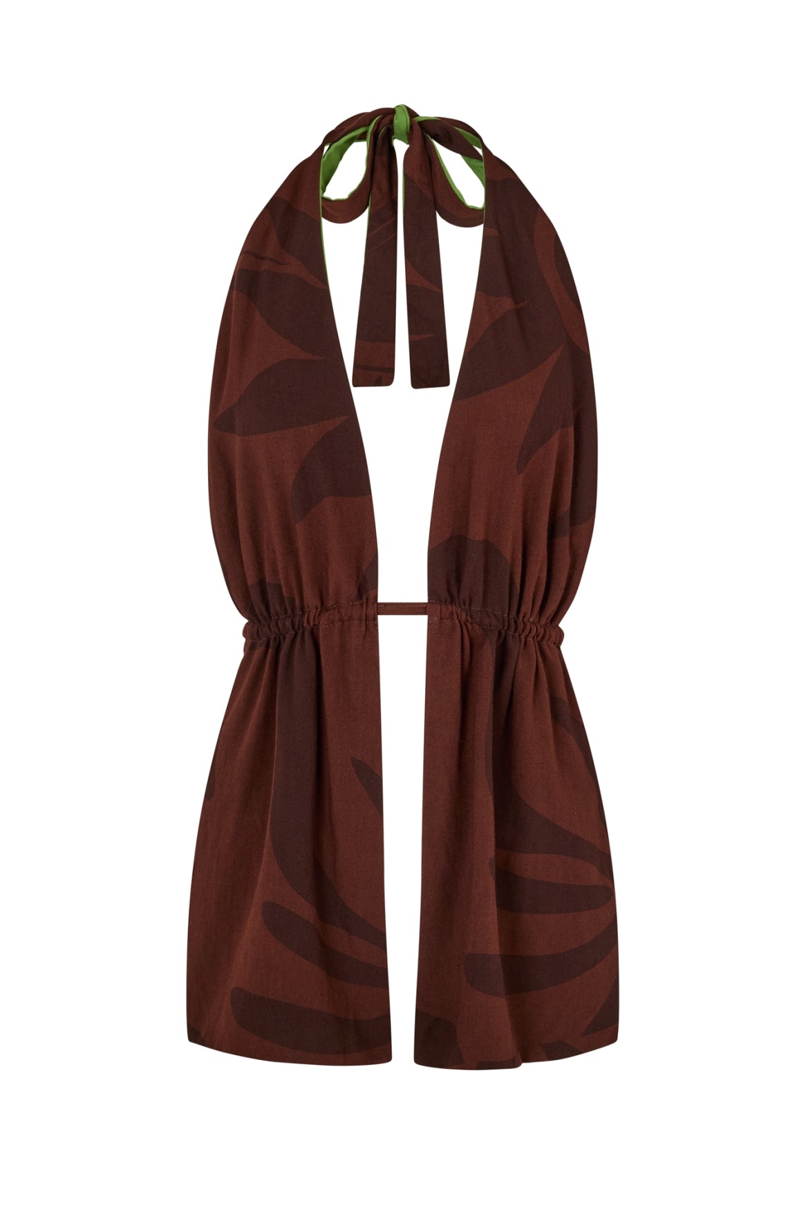 Fangen Sie den Geist tropischer Eleganz mit diesem wunderschönen wendbaren Neckholder-Top ein. Entworfen mit einem tiefen Ausschnitt und einer sanft fließenden Silhouette, wird es im Nacken gebunden und bietet eine verstellbare, schmeichelhafte Passform. Der leichte, atmungsaktive Stoff fällt anmutig über den Körper und schafft einen entspannten, aber dennoch eleganten Look — perfekt für warme, sonnenverwöhnte Tage.