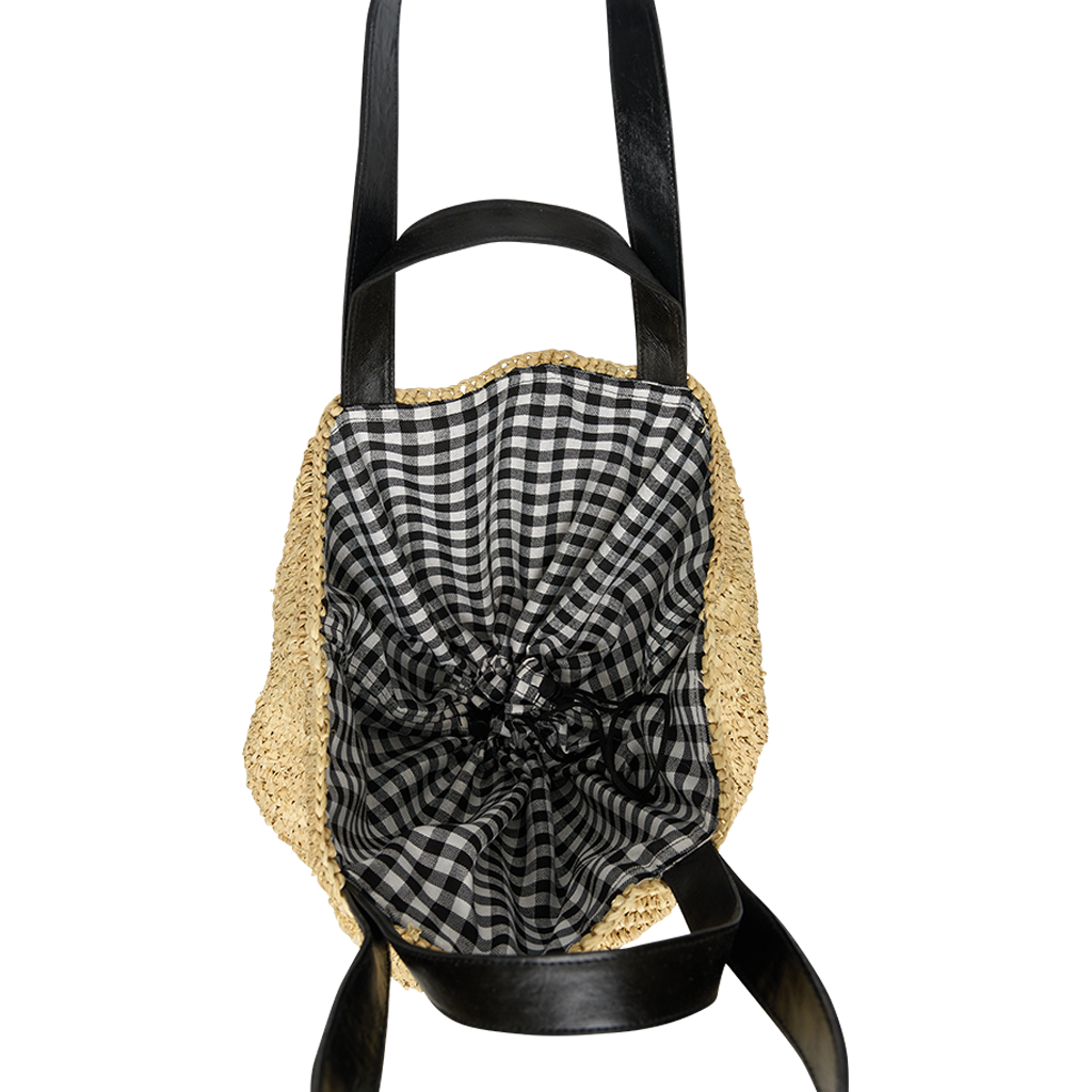 Diese geräumige Strandtasche aus Rattan ist perfekt für Ihre Handtücher und Badebekleidung. Nehmen Sie die Tasche mit zu einem Tag am Strand, zum Einkaufen oder nutzen Sie sie als Babytasche! Die Innenseite ist mit einem schwarz-weißen Karomuster versehen.
