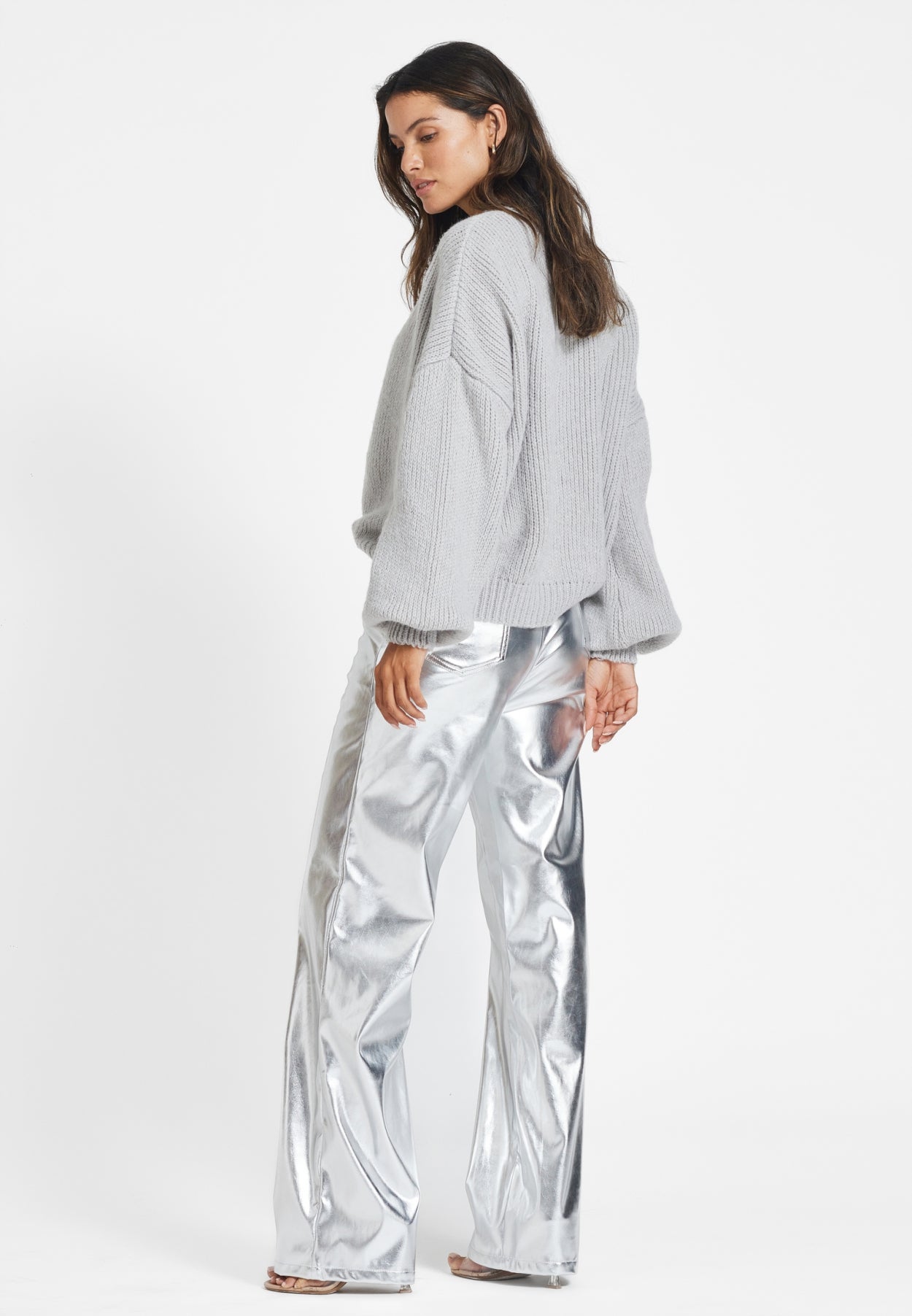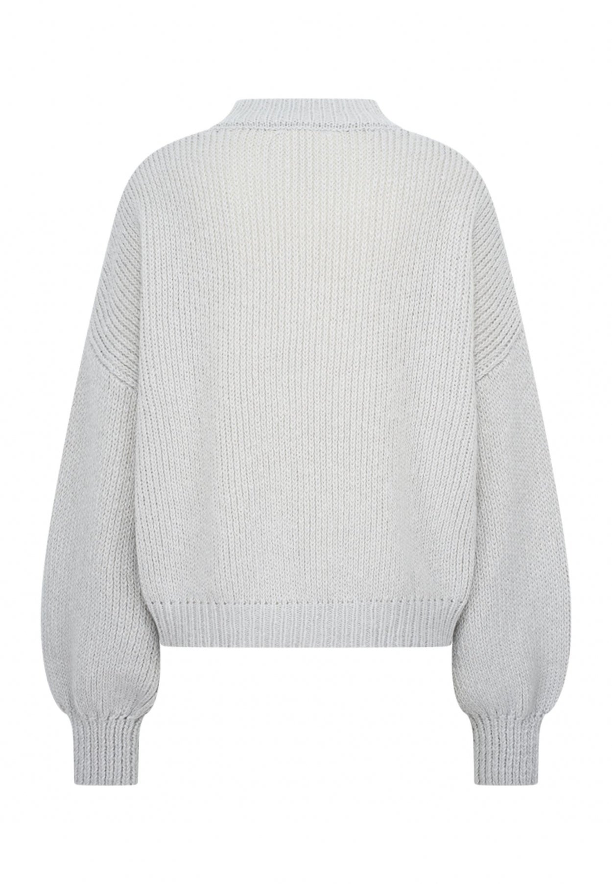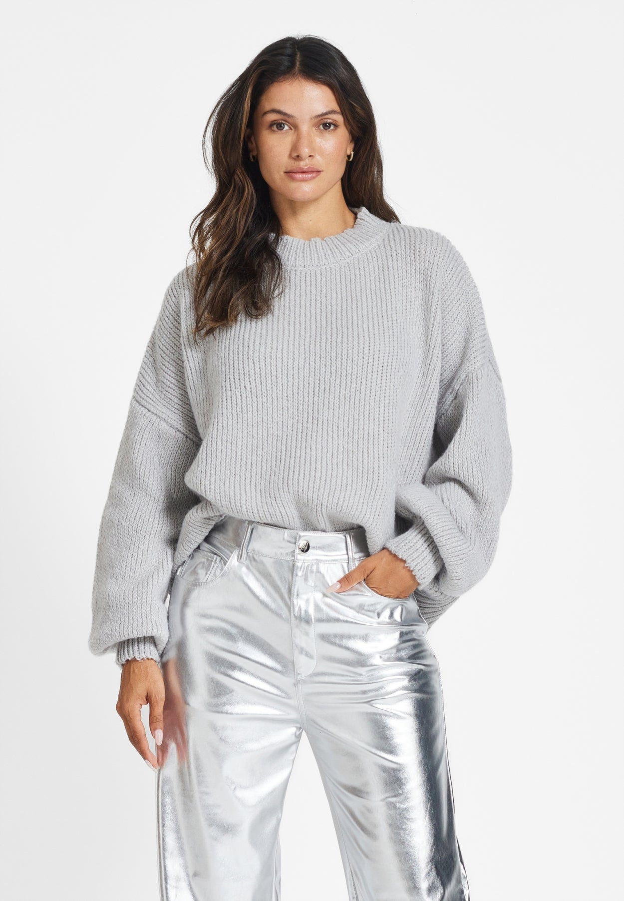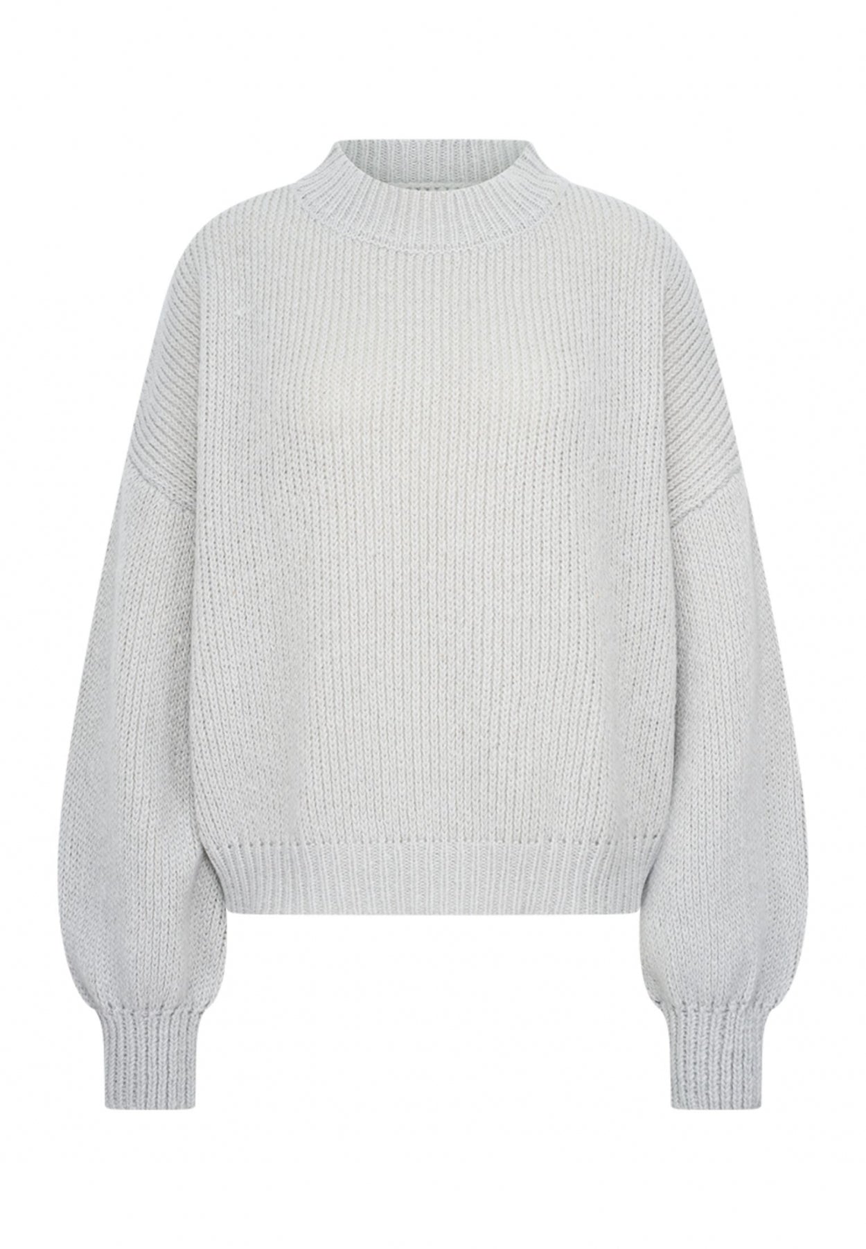 Dieser graue Pullover ist aus 100 % recycelten Materialien gefertigt. Er hat einen hohen Ausschnitt und verspielte Puffärmel. Er ist Ihre vielseitige und umweltbewusste Wahl für formelle und legere Anlässe. Unser Tyra Knit Sweater ist Mode mit Zweck.