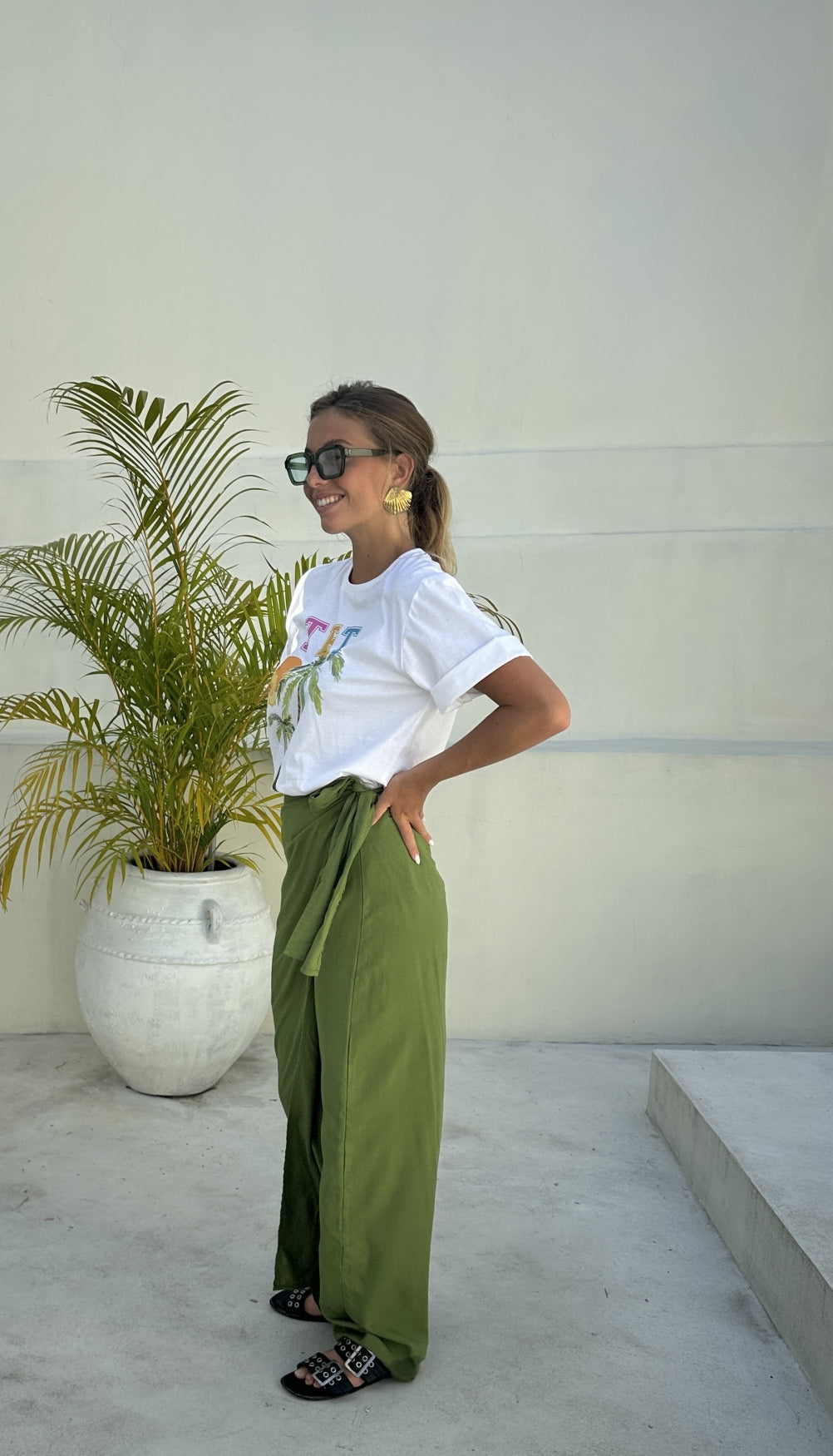 Breng moeiteloze eilandstijl naar voren met deze prachtige olijfgroene wikkelrok. Ontworpen met een vloeiend, verstelbaar silhouet, wordt hij in de taille gestrikt voor een aanpasbare pasvorm die elk figuur flatteert. De lichtgewicht, ademende stof beweegt sierlijk bij elke stap, waardoor hij perfect is voor tropische uitjes of ontspannen zomerdagen. Het veelzijdige ontwerp maakt eenvoudig stylen mogelijk, van strandwandelingen tot diners bij zonsondergang.