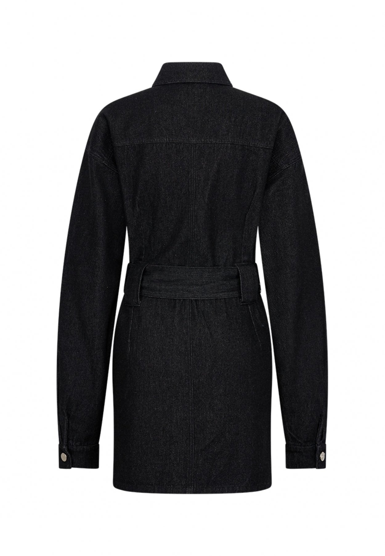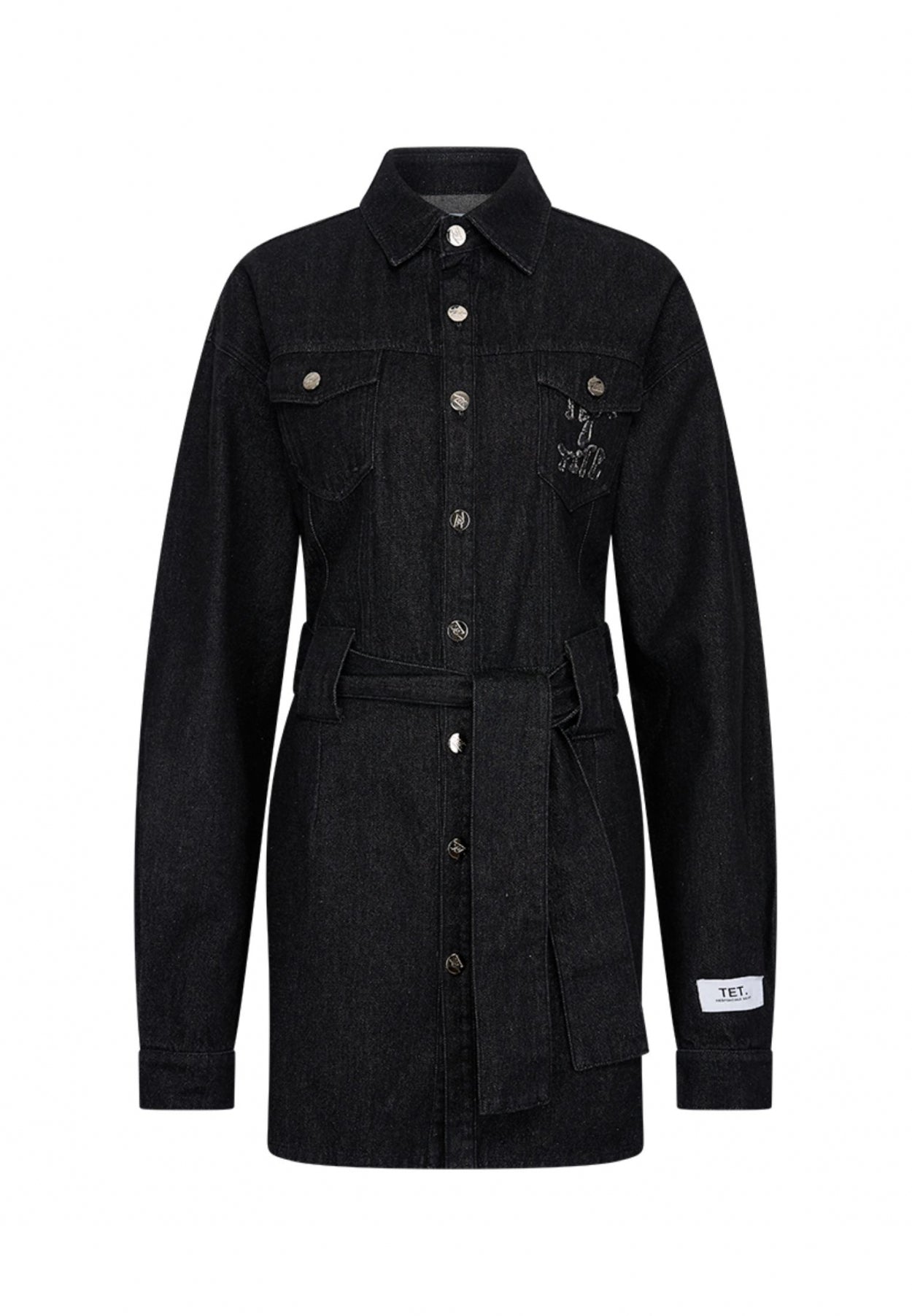 Maak kennis met onze Claudia Denim Dress, een combinatie van klassieke charme en eigentijdse stijl. Deze korte, slim-fit jurk is voorzien van ons merklogo op de knopen en op de linkermouw. Met twee borstzakken, waarvan één geborduurd met de tekst "tête-à-tête" en een ceintuur in de taille om je figuur te omsluiten, combineert deze jurk mode met functionaliteit. Of het nu voor een speciale gelegenheid is of voor alledaags chic, deze zwarte denim jurk is een veelzijdige aanvulling op je garderobe.