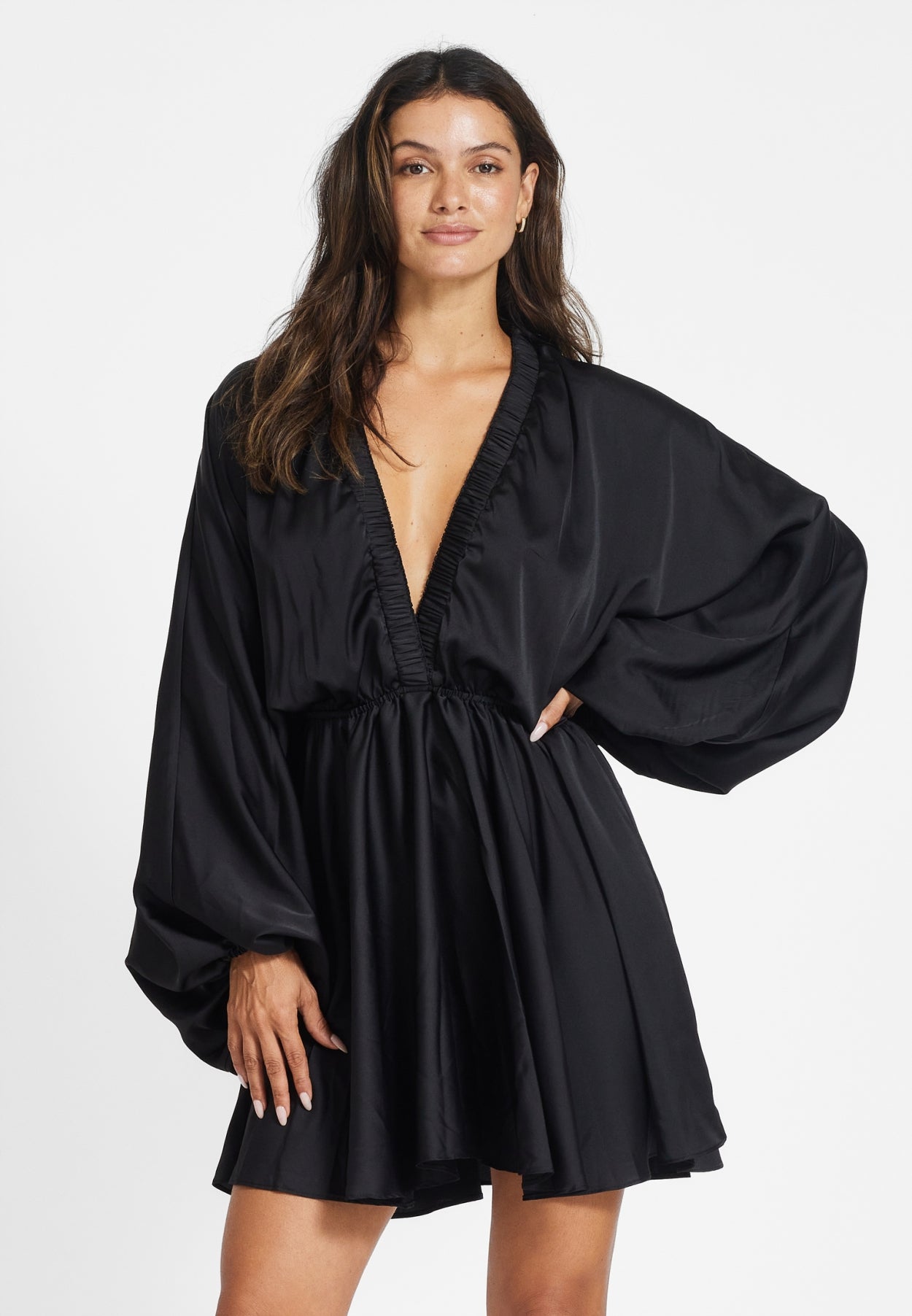 Onze Kate Satin jurk is een nieuwe versie van de Luna Puff, met een diepe v-hals en pofmouwen. Dit item is de perfecte garderobe voor dit feestelijke seizoen, nu verkrijgbaar in drie kleurstellingen.