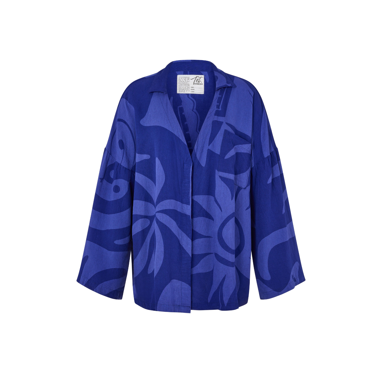 Dompel jezelf onder in kustachtige sereniteit met dit prachtige overhemd. Met een oversized, relaxte pasvorm en subtiele tonale patronen combineert het moeiteloos comfort met een gedurfde, verfijnde uitstraling. Afgewerkt met kokosnootknopen voegt het een organisch accent toe aan de lichtgewicht stof, die bij elke bries sierlijk meebeweegt.