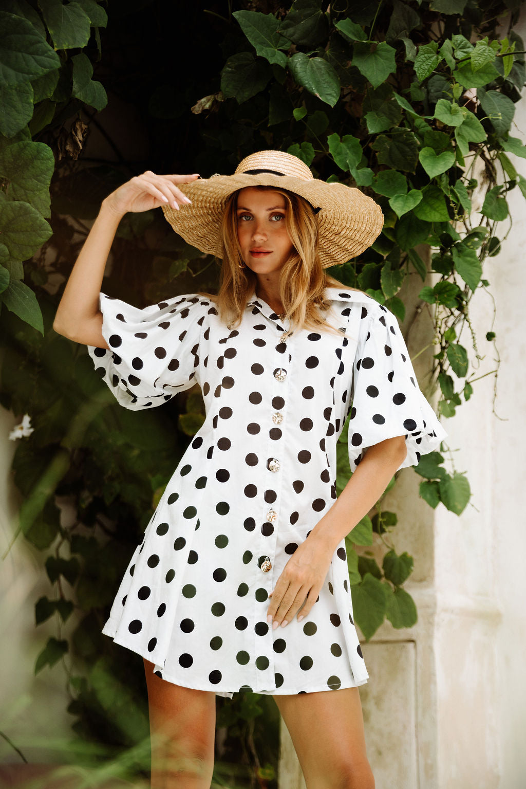 Step into summer with the effortless elegance of the Bella Short Dress. Made from a playful black and white polka dot fabric, this dress combines a timeless print with a light and feminine silhouette. Perfect for warm days and relaxed evenings, it offers a soft feel and a flattering fit that moves beautifully with you.