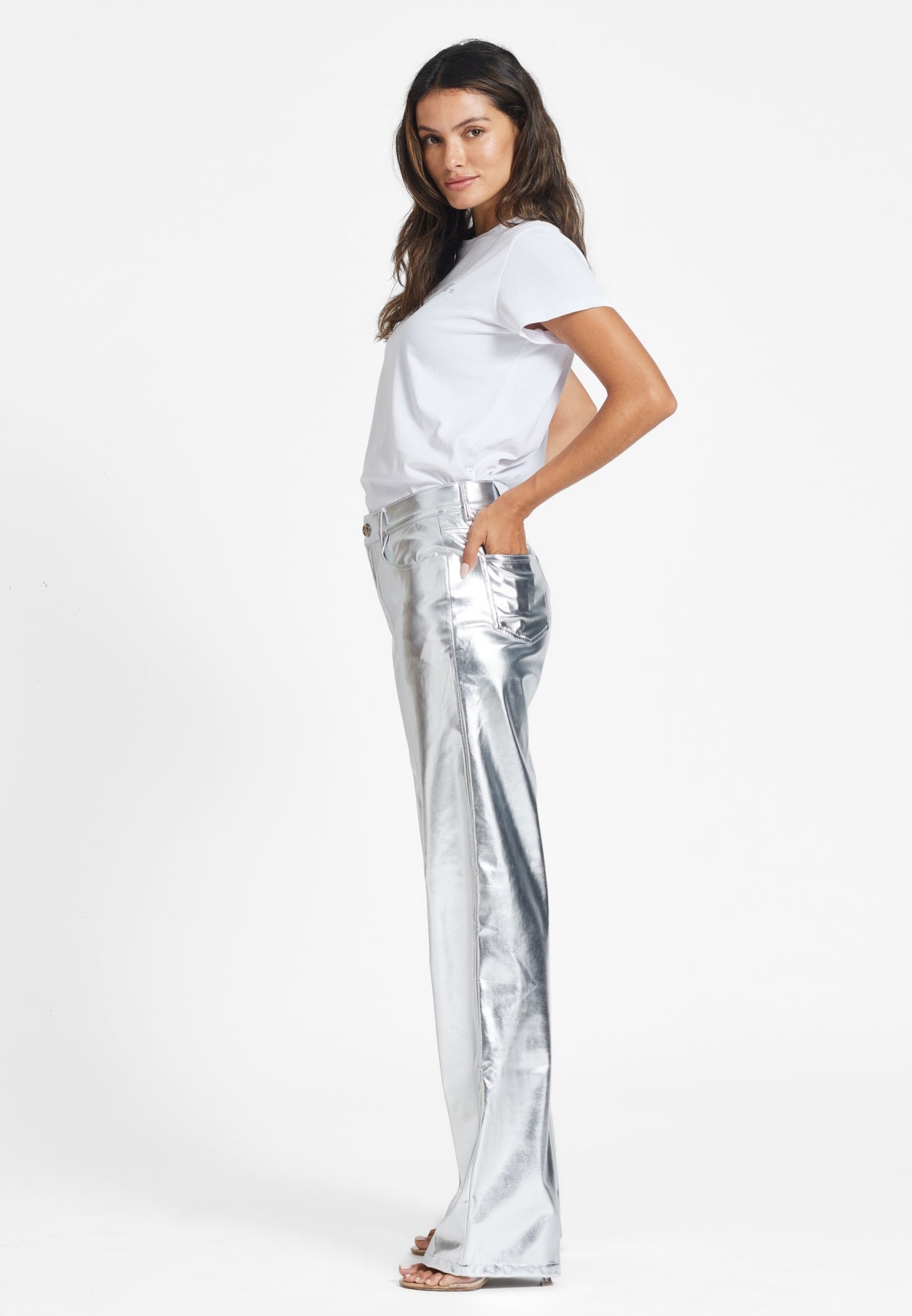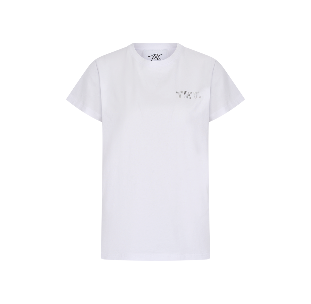 Our Heidi Tee in white is made from organic cotton and feels super soft on the body. Featuring our brand name in rhinestones on the front.
