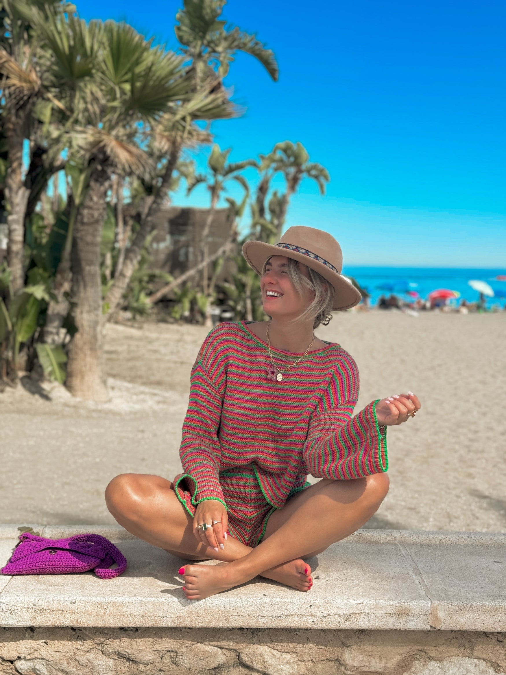 The Malaga shorts are designed to offer lightness and comfort while still having a trendy look. This item is made from high-quality responsible materials by women from Bali. The garment has a knitted construction. The fit of the short gives the freedom to move and enjoy the summer breeze. It is the perfect choice for beach days or even a relaxed night out, and can be paired with the matching Sedella top.