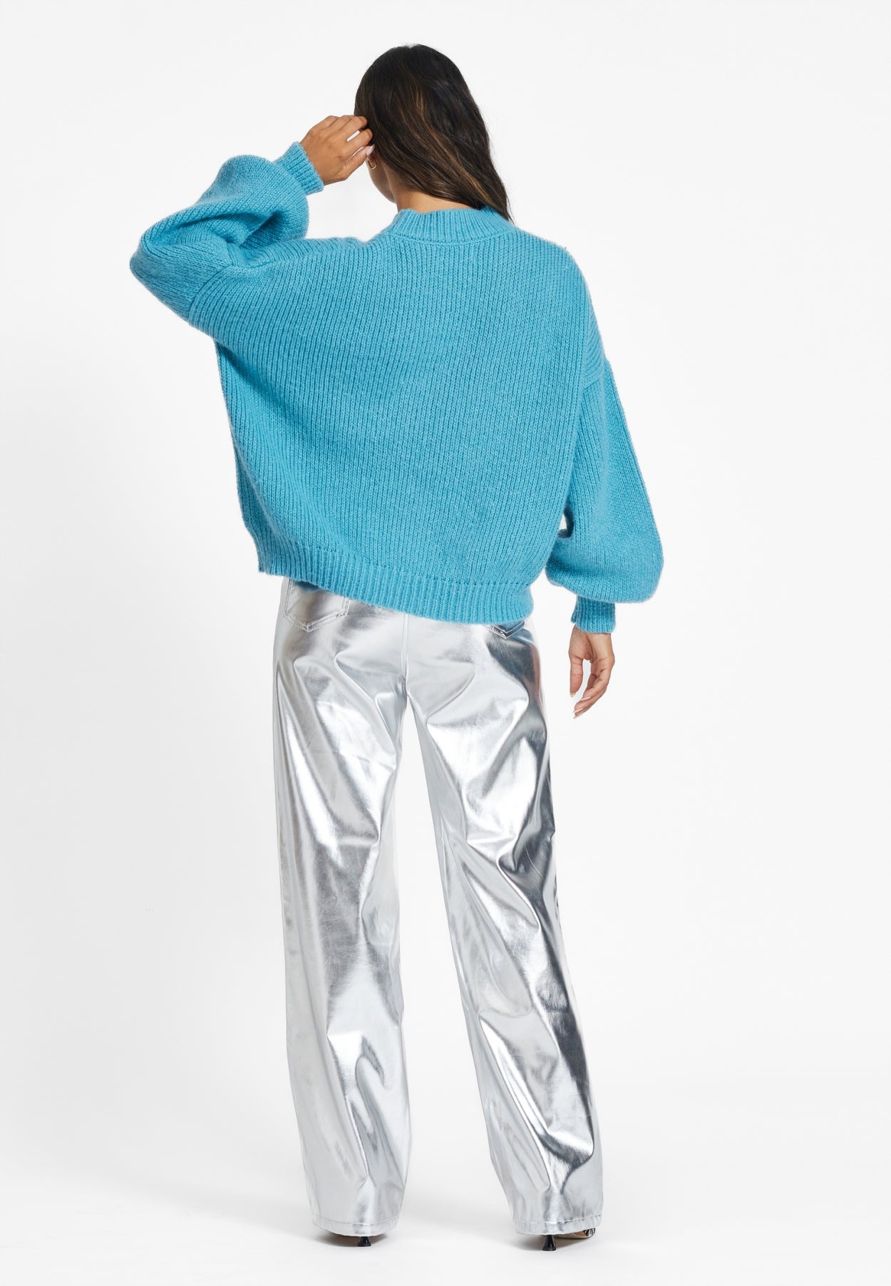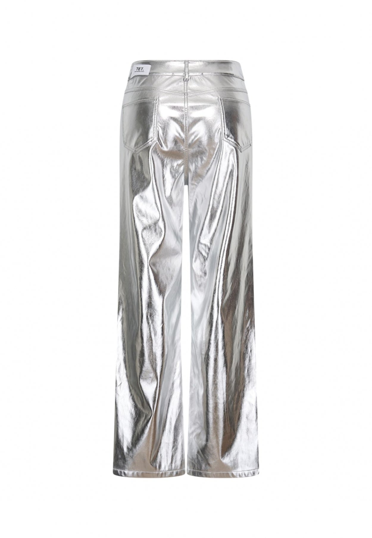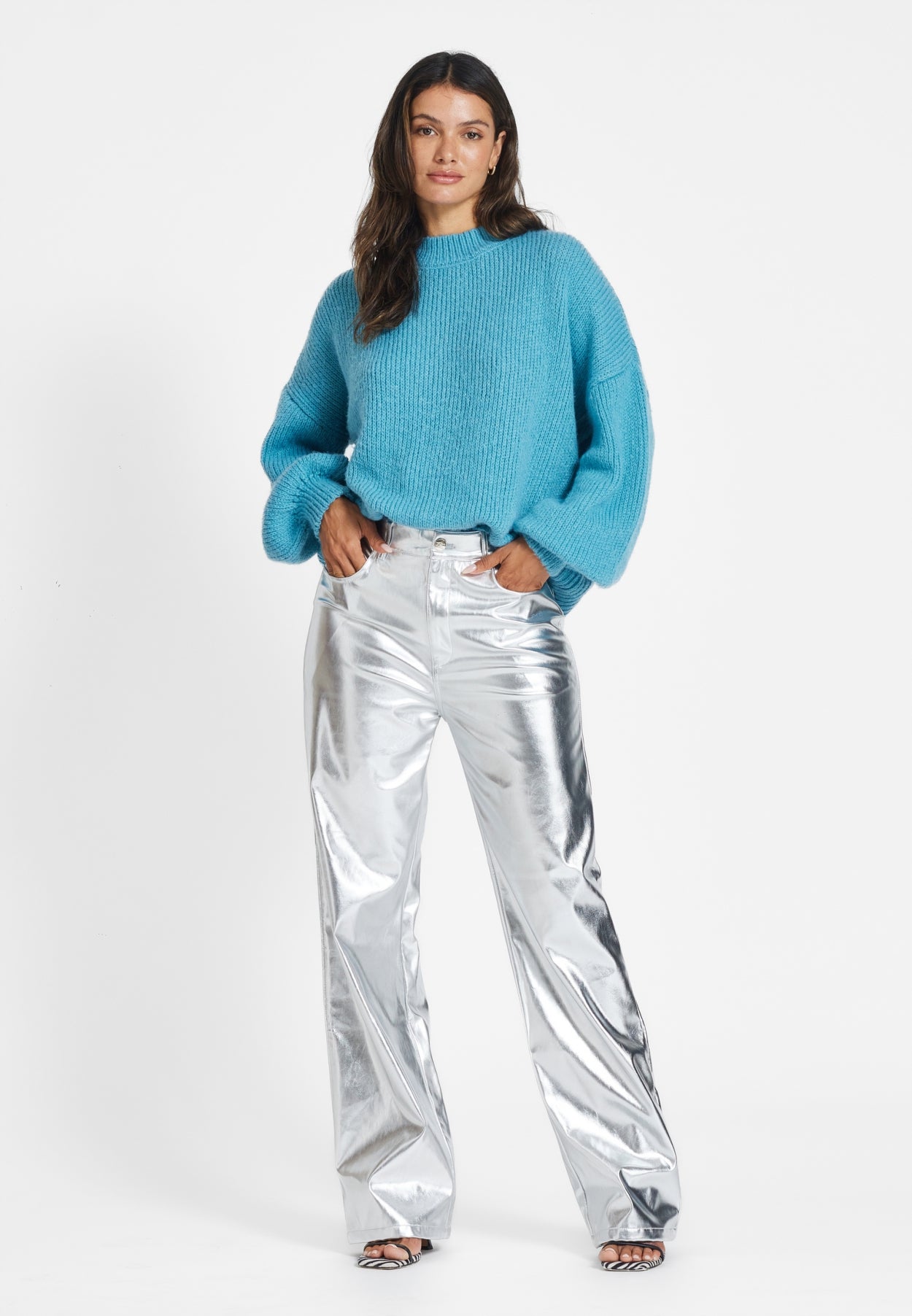 Our Naomi Silver Pants are your ticket to making a dazzling statement, these metallic pants will ensure you stand out in any crowd. With its long, wide-leg silhouette, these high-waisted pants offer a bold and glamorous look. Featuring a zip closure.