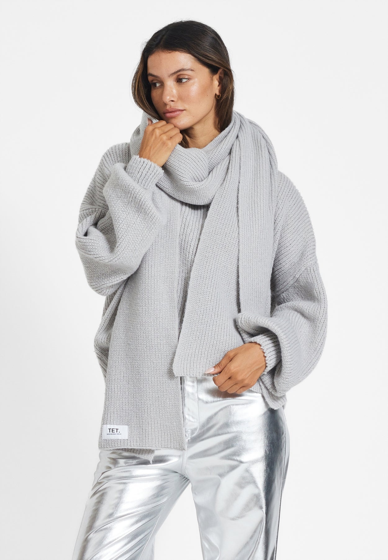 Our Tatjana Gray Scarf in light gray is here to keep you warm this season. Made from 100% recycled materials with a super soft feel, it can be worn on its own or in combination with our Carla Beanie.